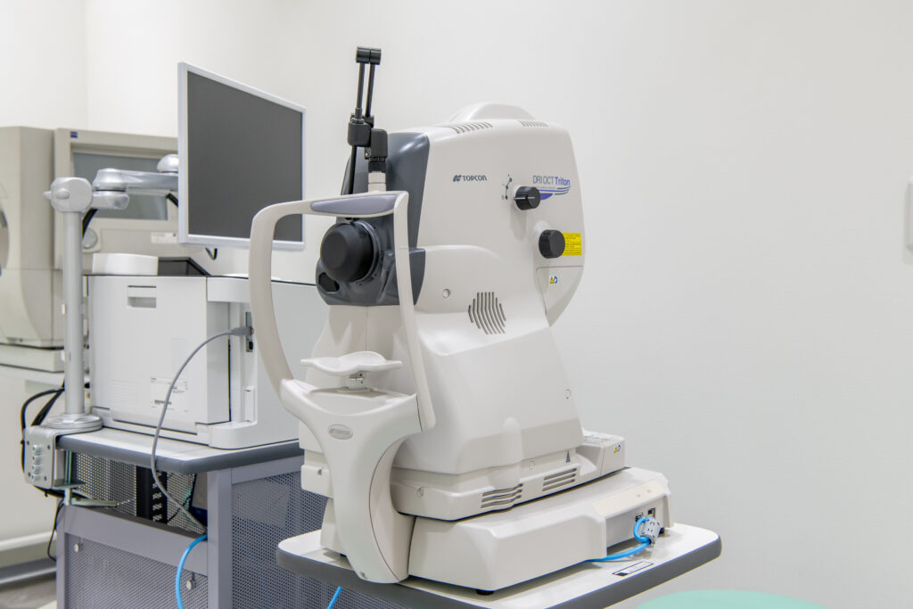 当院では、黄斑部・視神経乳頭を断面図として映し出す事ができる3D-OCT(光干渉断層計)など最新の検査機器を用いて早期発見に取り組んでいます。